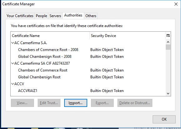 4. Click "Import" and select the CA certificate