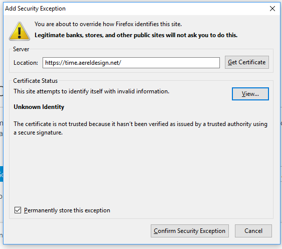 3. Tick permanently store exception. And hit confirm.